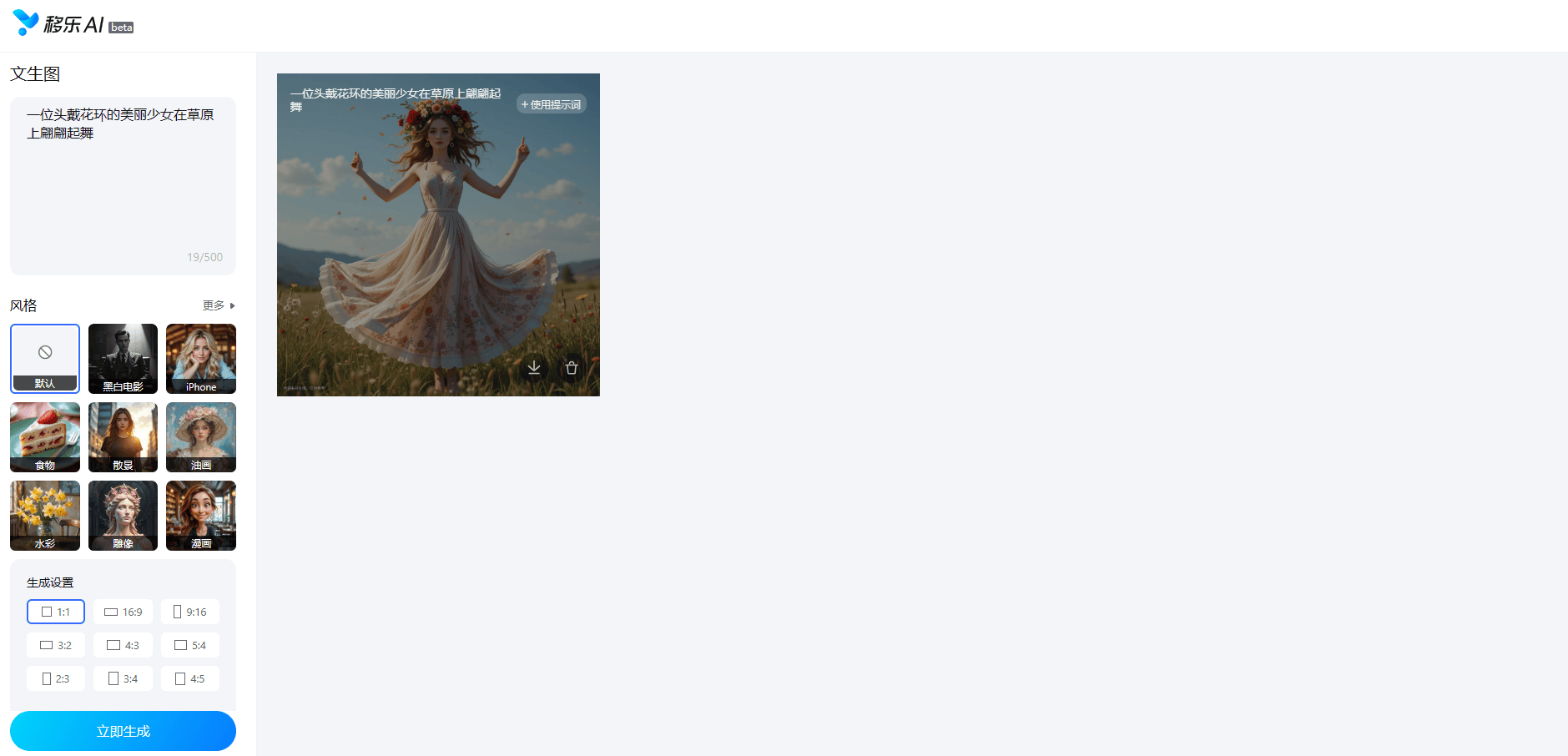 正在短短几秒内生成取之婚配的创企图片。提拔产物的展现结果和吸引力;让每一小我都能平等地享遭到科技成长带来的盈利。是移乐科技正在AIGC范畴的一次主要结构。除了移乐文生图。