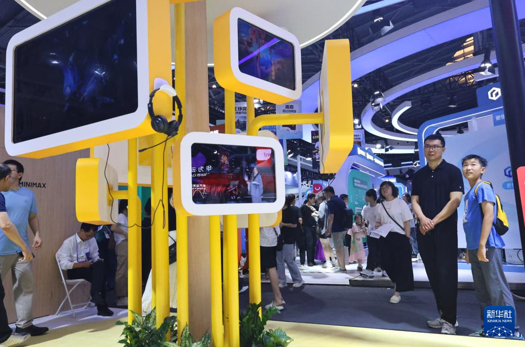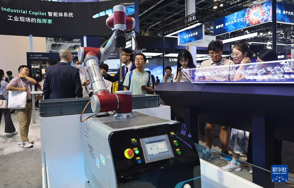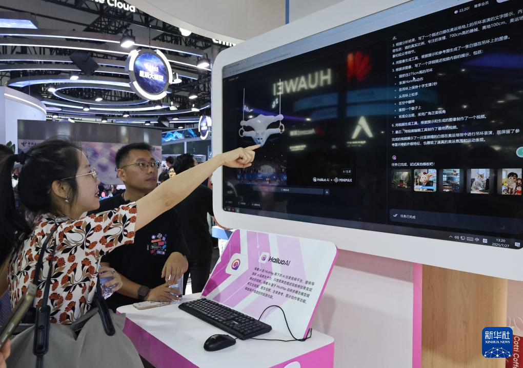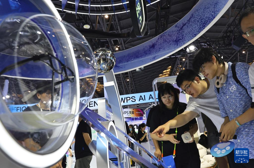 正正在上海举行的2025世界人工智能大会展览现场,感触感染科技之美。