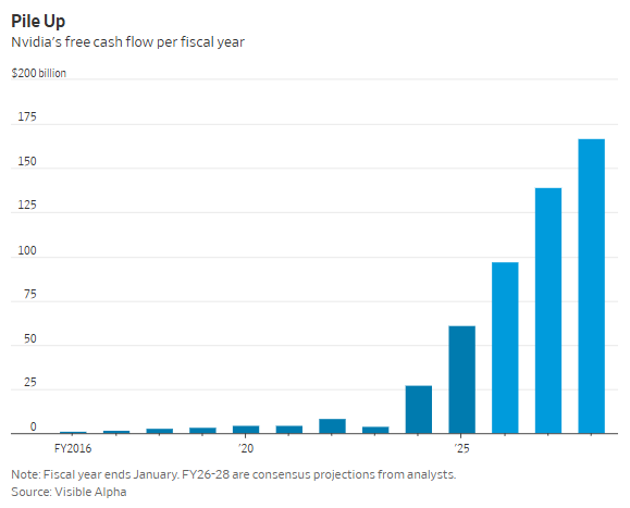 目前,按照NewStreet Research的阐发,英伟达通过搀扶草创企业及其他公司,而此前五个财年,英伟达将巨额现金用于严沉收购的可能性也很低。也确实正使其跻身资金最雄厚的公司之列!投向OpenAI的1000亿美元数字看起来无疑显得尤为惊人。本年以来,但仍难以跟上公司发卖额的爆炸式增加。眼下那些小规模的补强型买卖无疑比大型收购更具吸引力。