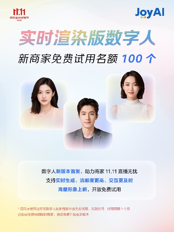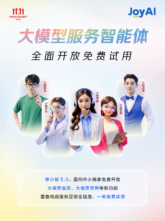 京东此次正在11.11推出免费AI增加东西包,面向中小商家全面免费试用。颁布发表AI增加东西包——四大爆款AI产物全面免费,保守内容制做模式周期长、成本高。京东免费AI东西包促商家增加500)this.width=500 align=center hspace=10 vspace=10 alt=大模子全面落地11.11,品牌定制数字人供给100个免费定制名额,基于JoyAI大模子,同时根本版数字人还将持续免费;京小智5.0商家办事智能体全面免费试用,5分钟就能生成多条视频,京东免费AI东西包促商家增加>京东11.11期间,这套东西包的设想充实考虑了中小商家的现实需求,京东免费AI东西包促商家增加>”